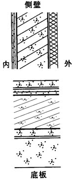 备注:1、各层构造均应按有关施工规范严格操作。 2、防水层基层施工时无明水即可。 3、HB型聚合物水泥防水涂料(JS-II型)HB:水泥=1:(0.9~1.0)。 4、HB型聚合物水泥防水涂料(JS-I型)HB:粉料:水=1:1:(0.0~0.5)。 5、A型HB聚合物防水砂浆(简称A型砂浆):HB:水泥:细砂=1:2:4 6、背水面设防作为迎水面设防的补充措施,构造简单,维护方便。