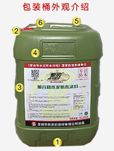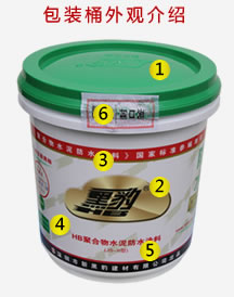 ③ 标贴上方印有红底白字的“《聚合物水泥防水涂料》国家标准参编单位”字样。