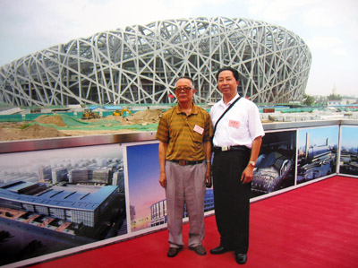 公司王总经理(右)和北京市工程研究院著名防水专家、教授级高级工程师叶林标先生(左)在北京奥运工程进行防水调研。